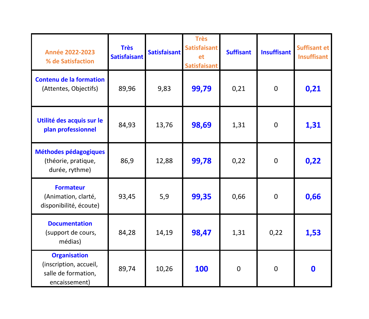 Taux Général de Satisfaction pour nos Formations : 99.34%.